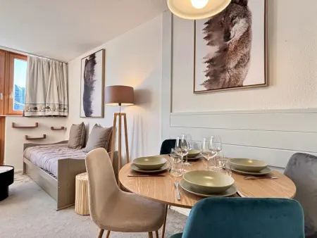 Cet agréable appartement pour 4 personnes est situé au 5ème étage de la résidence "Les Fontaines Blanches", avec balcon exposé plein Sud offrant une jolie vue sur la station et les montagnes.