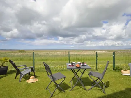 Belle maison mitoyenne "La belle étape", de 2 étages. Au centre de Cherrueix, à 500 m de la mer, à 300 m de la plage, orientée sud. En commun: piscine rectangulaire chauffée, à l'abri des regards (10